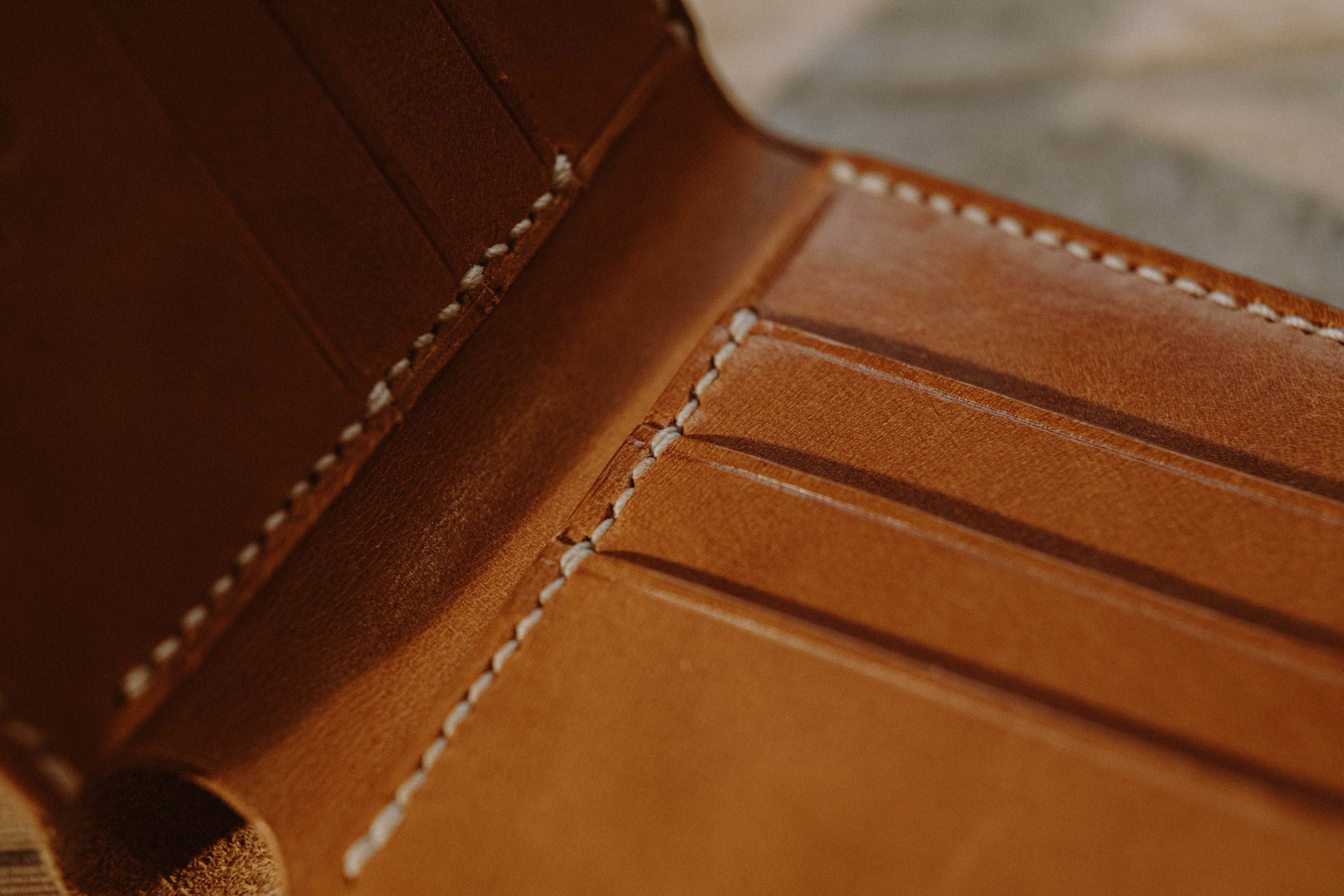 We use what's called a saddle stitch, which is a stitch that can only be created by hand; this style of stitching far outlasts that on a machine and ensures a leather good that represents artisanal craft and will last for years and years.