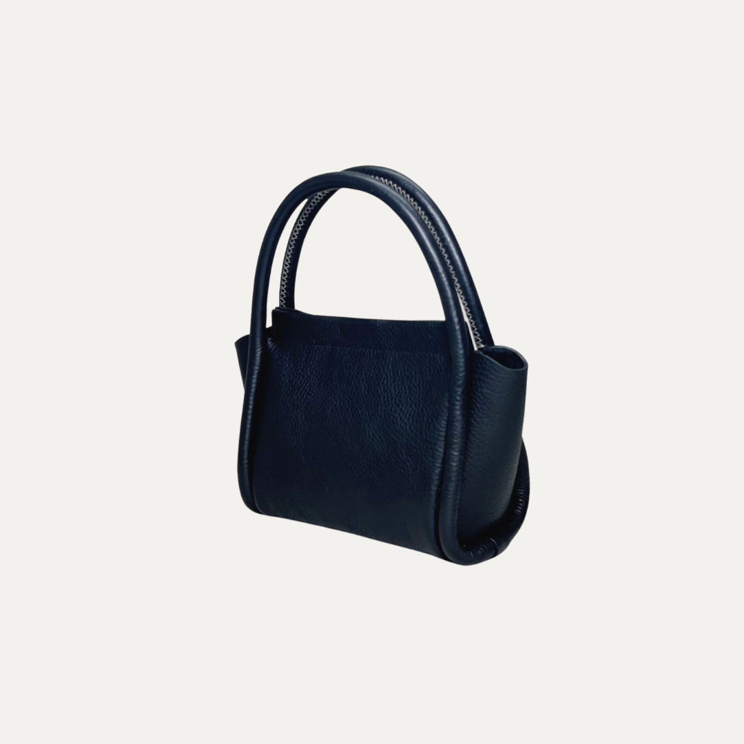The Gemini is a luxurious mini bag made with pebbled Italian calfskin. Its novelty loop handle and adjustable shoulder strap combine form and function for a sophisticated piece that will take you from day to night.